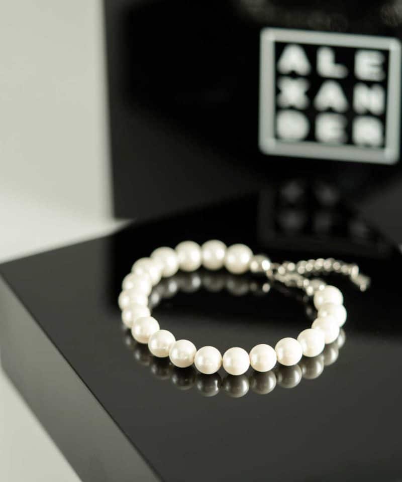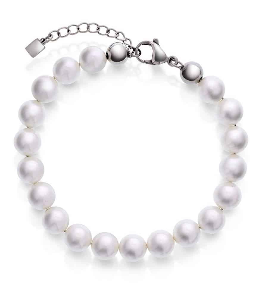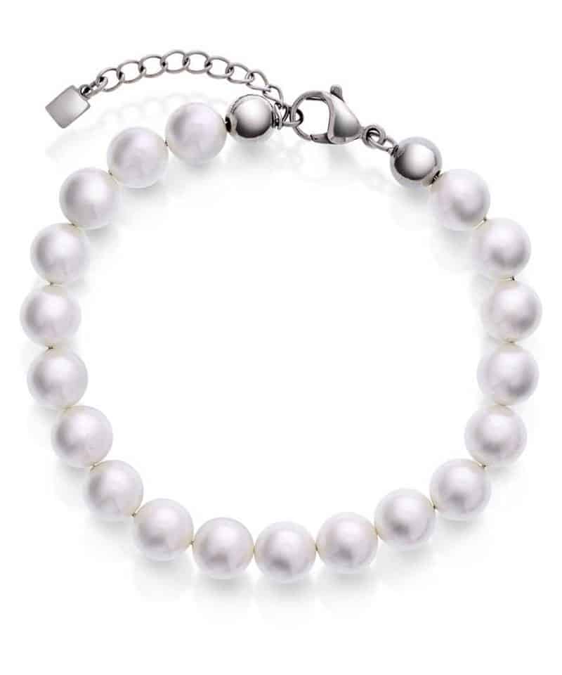 Armbånd i stål med hvite perler