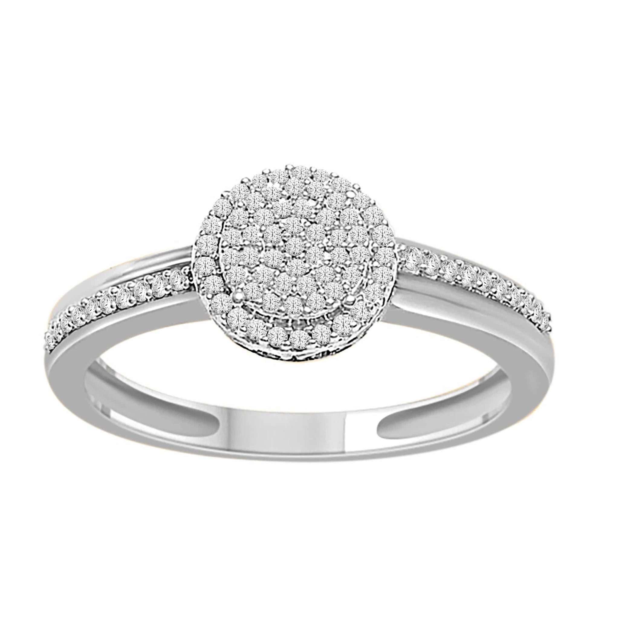 Nydelig diamantring i hvitt gull med mange diamanter som får ringen til å skinne. Med totalt 0,25ct tw.si kvalitet. Diamantene er fattet på skinne og har en rund topp med steiner som alle er brilliant slipte.