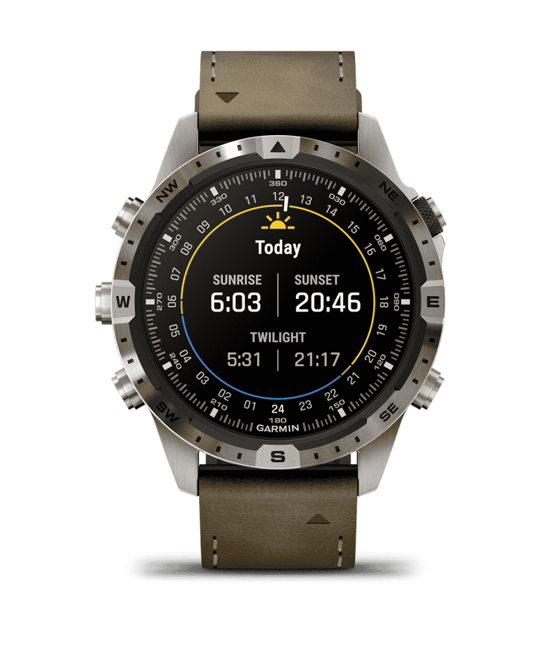 - Har en fantastisk AMOLED-berøringsskjerm med safirglasslinse og 360-graders kompassmarkeringer på beselen for å holde deg på sporet