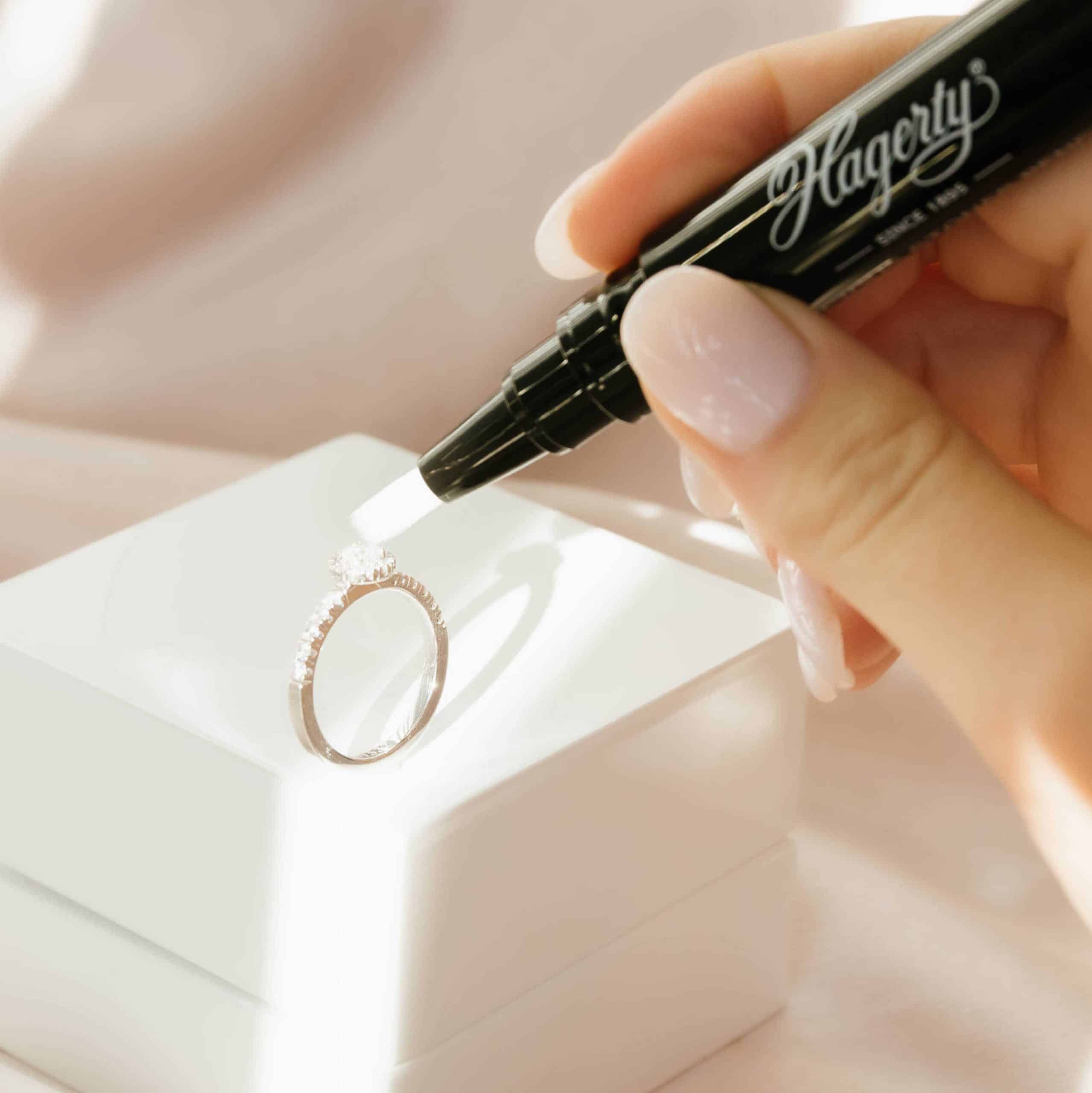 Spesialpenn med børste for rengjøring av juveler. Spesielt utviklet for å rengjøre og pleie diamanter og edelstener. Pennen er fylt med effektiv Hagerty-formel med aktive ingredienser som trenger igjennom og løser opp smusset på edelstenene. Inneholder spesifikke poleringsmidler og rensemidler som bringer tilbake glansen.