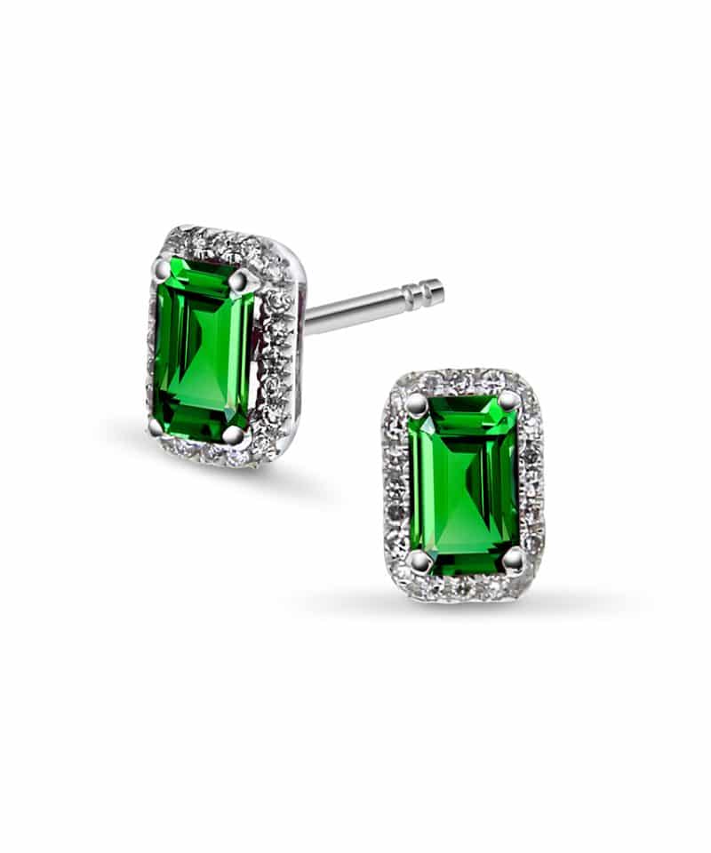 Øredobber i hvitt gull, Smaragd og Diamant 0.07ct (WSI)