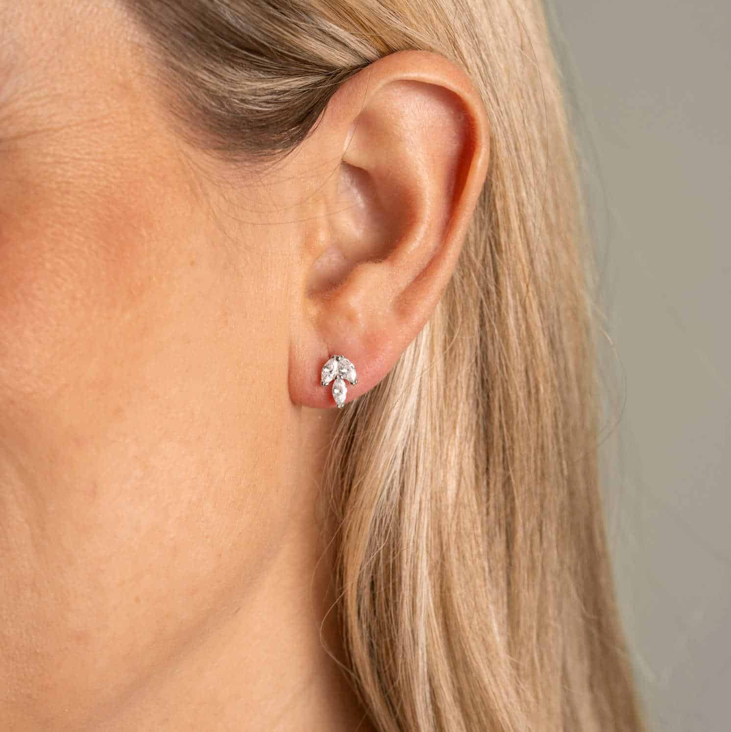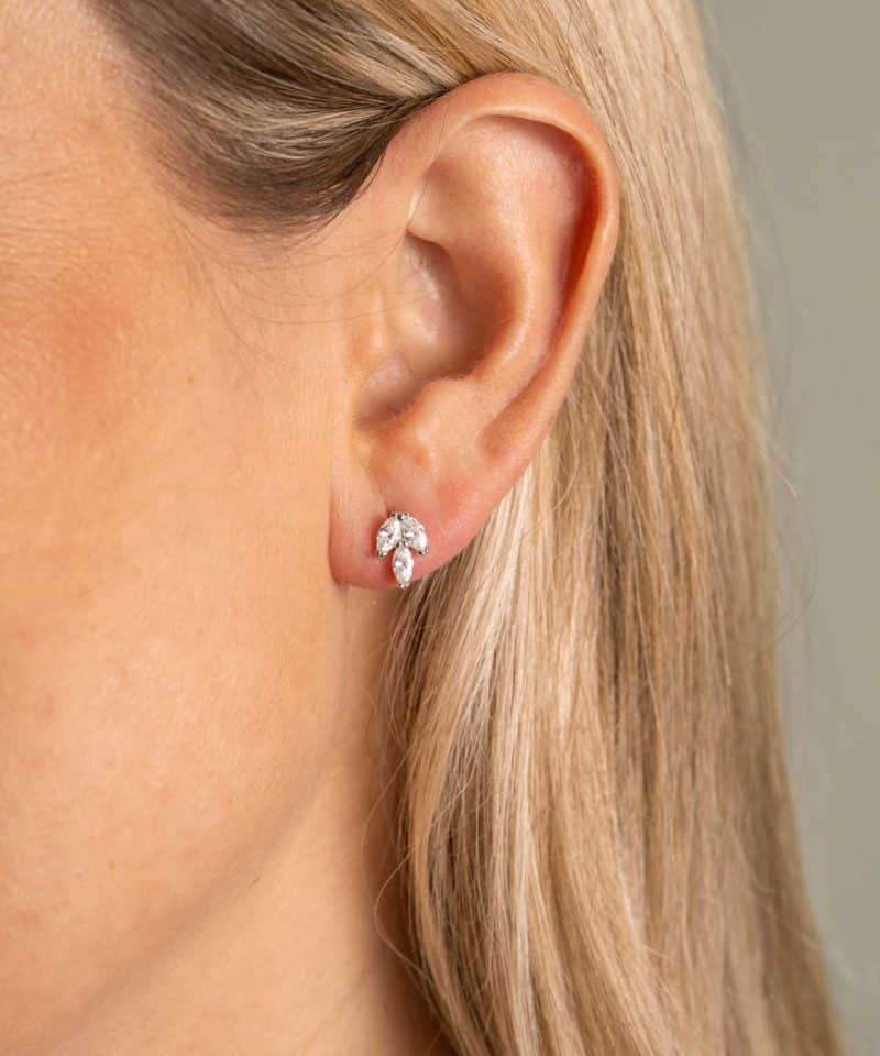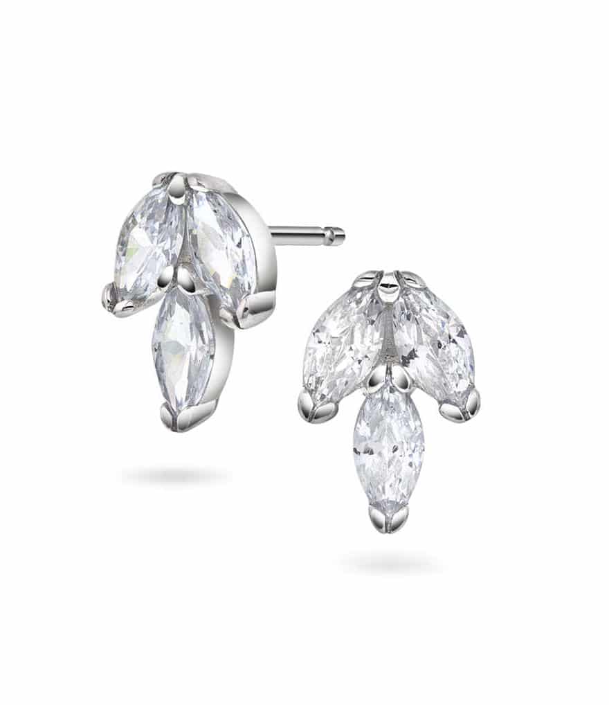 Øredobber i sølv med zirkonia blad