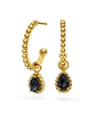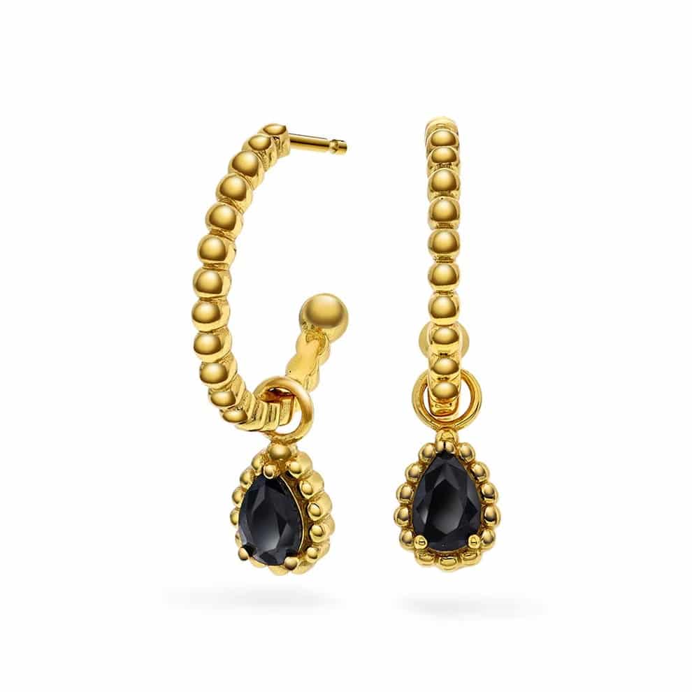 Øreringer i forgylt 925 sølv med sort sten