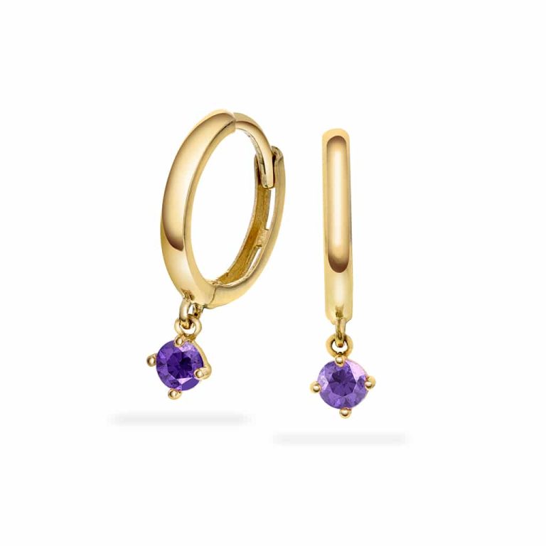 Øreringer i gull med lilla sten
