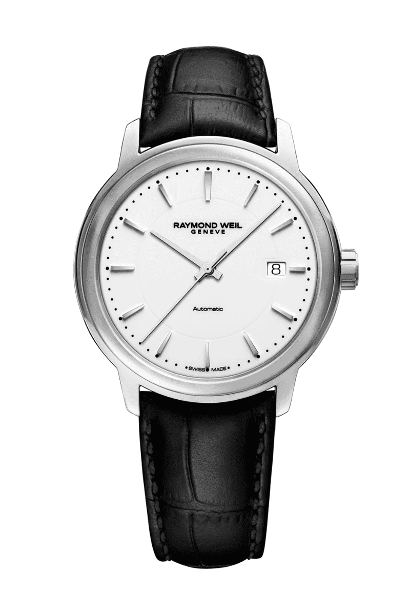 Raymond Weil Maestro Men’s White Dial Automatic Leather Watch 39.5 mm – 2237-STC-30011