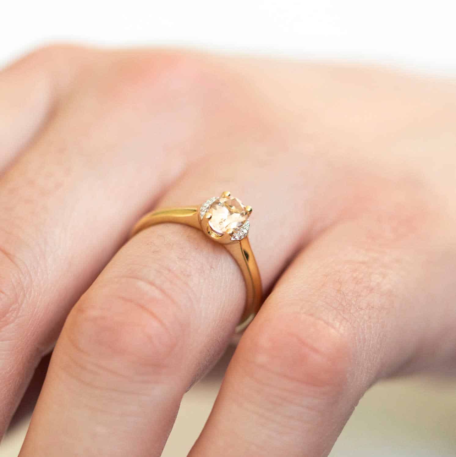 Ring i gull med morganitt og diamanter 0,02 ct