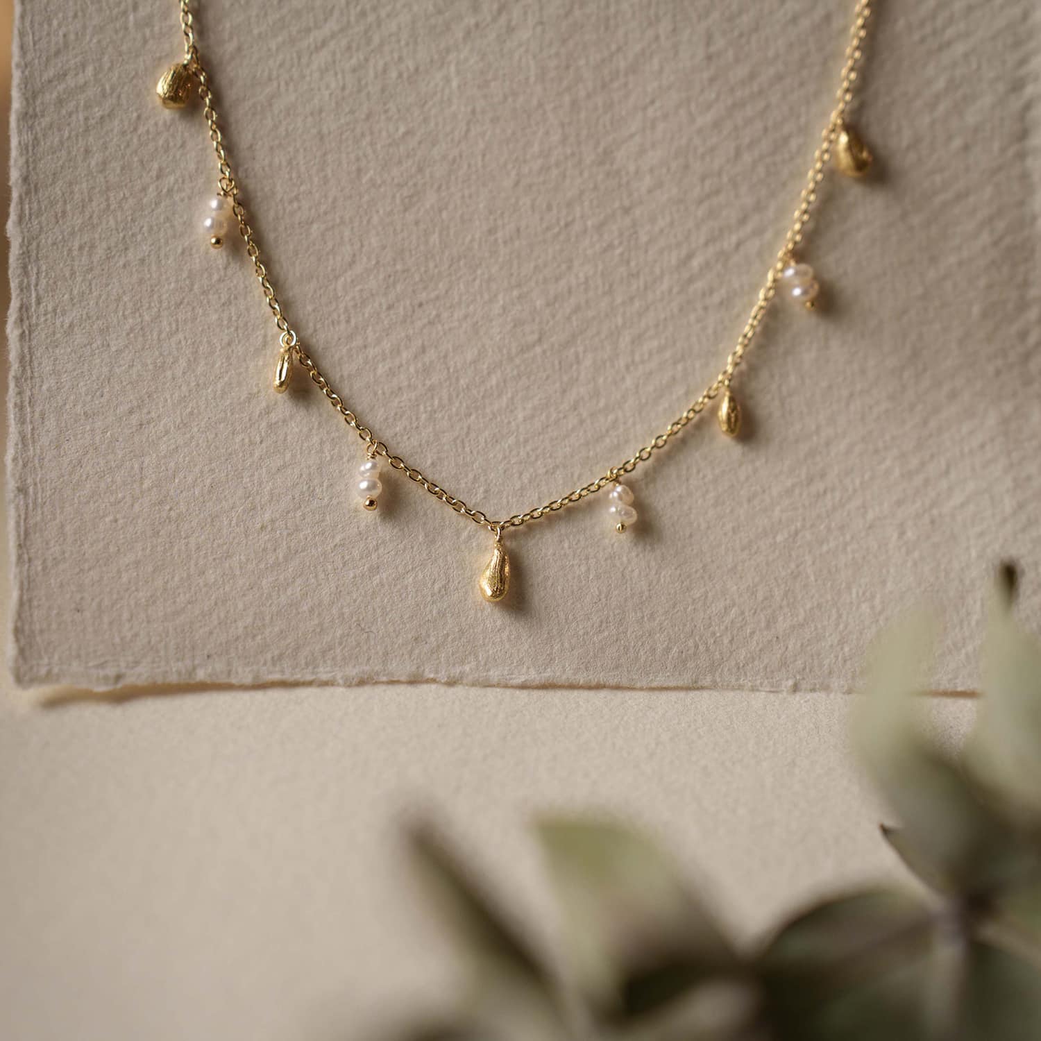 Seashell smykke i sølv med perler