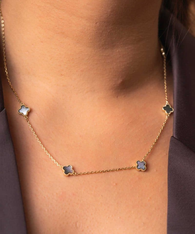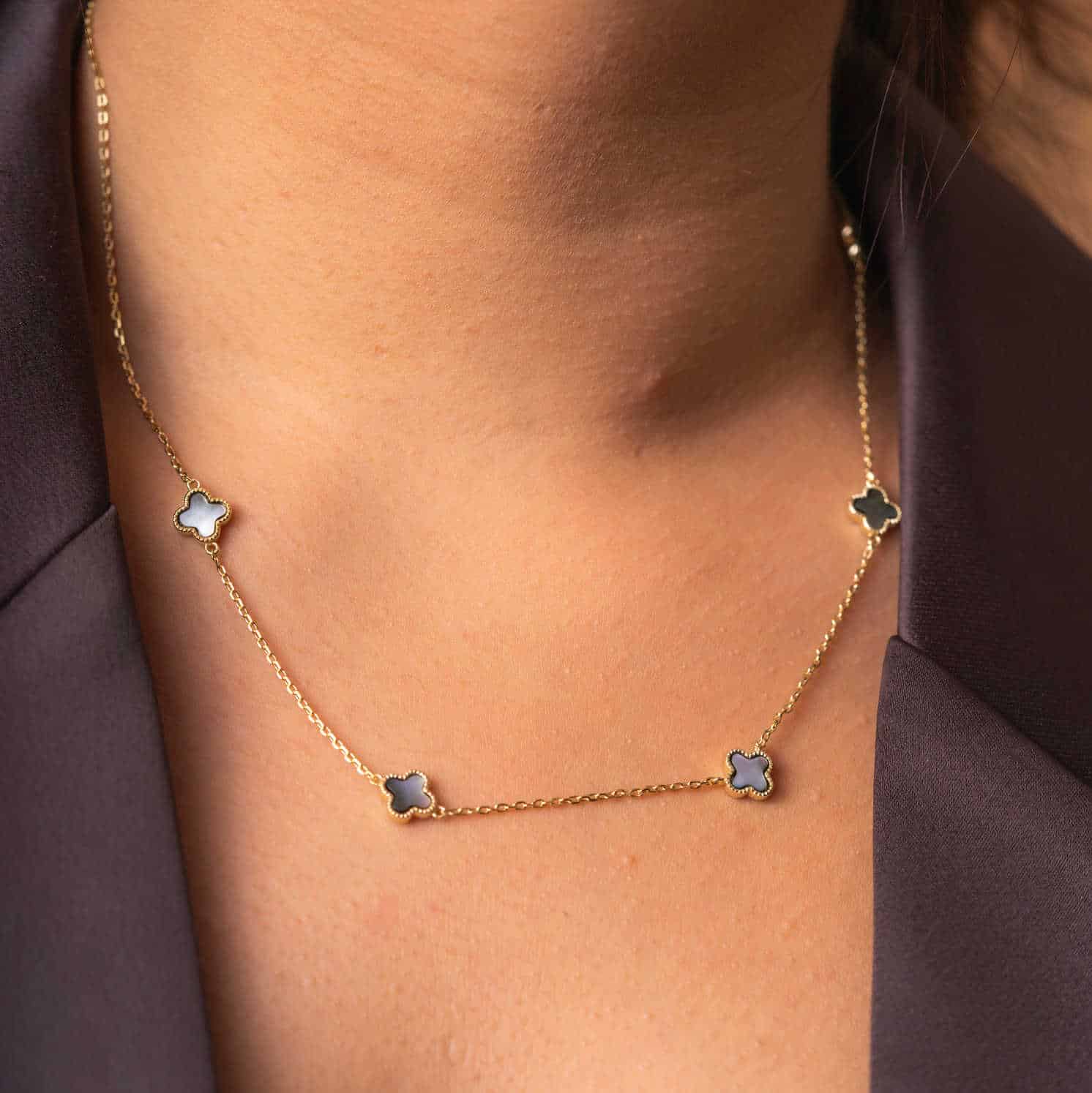 Smykke i sølv grå perlemor kløver