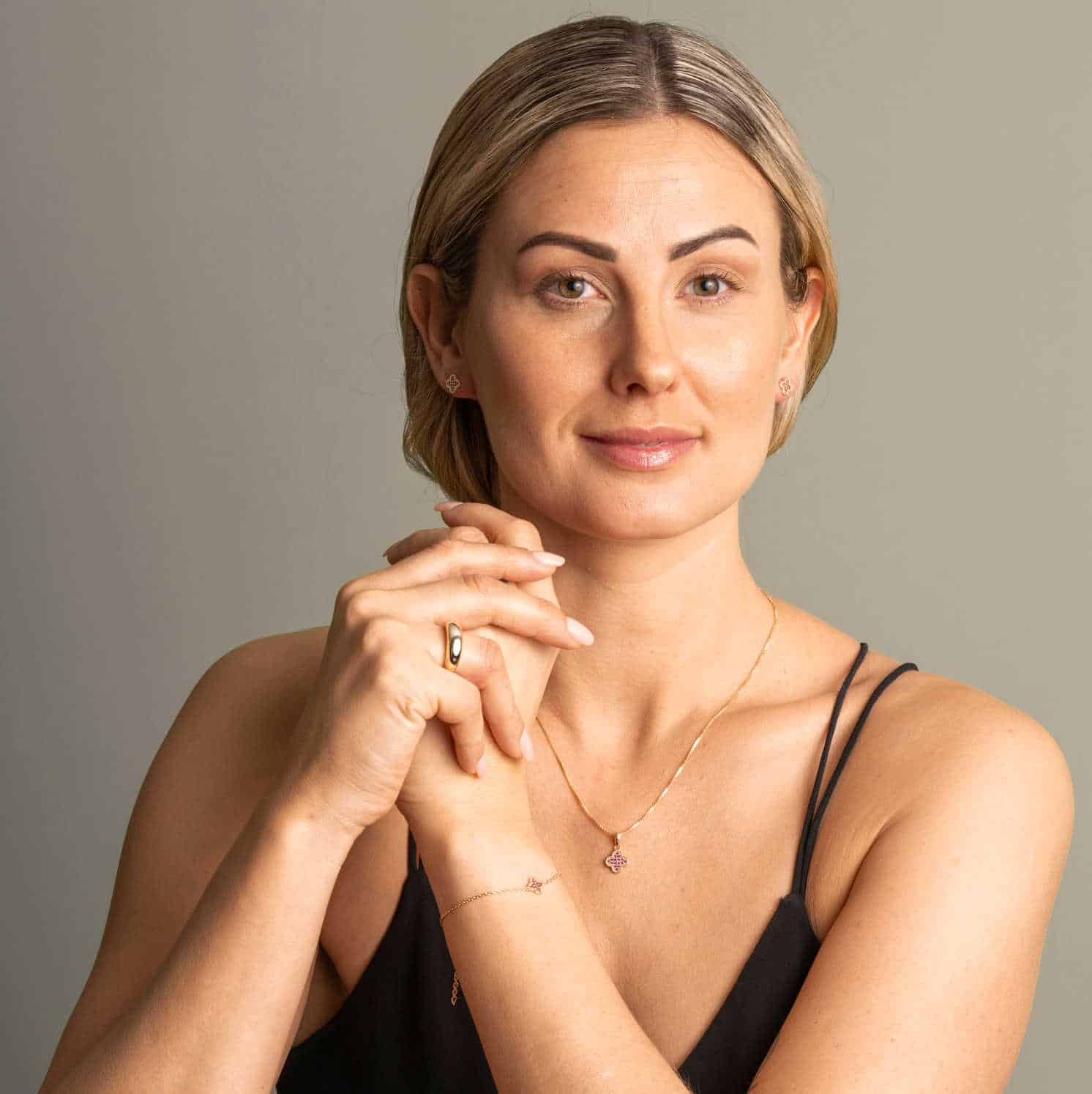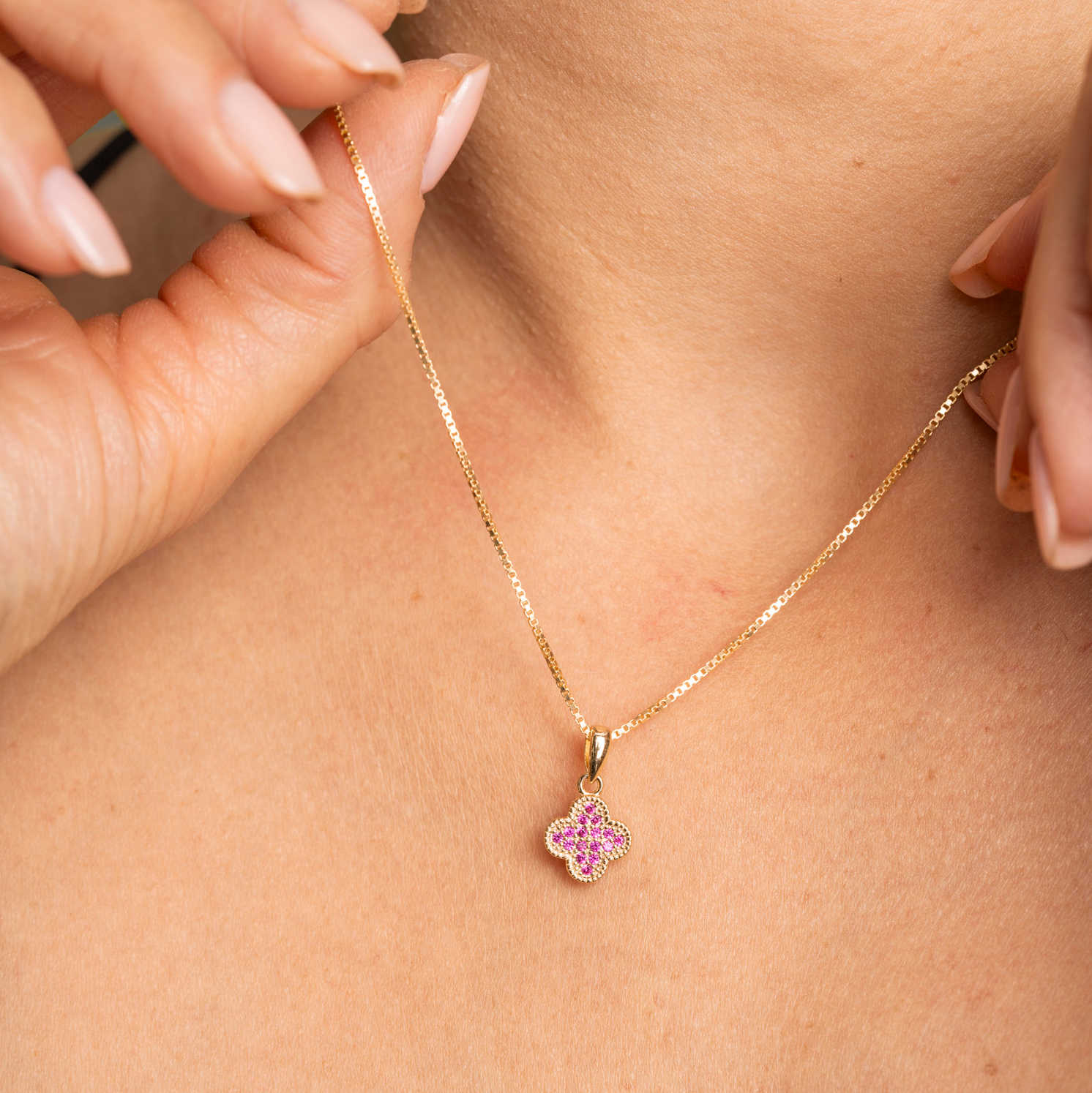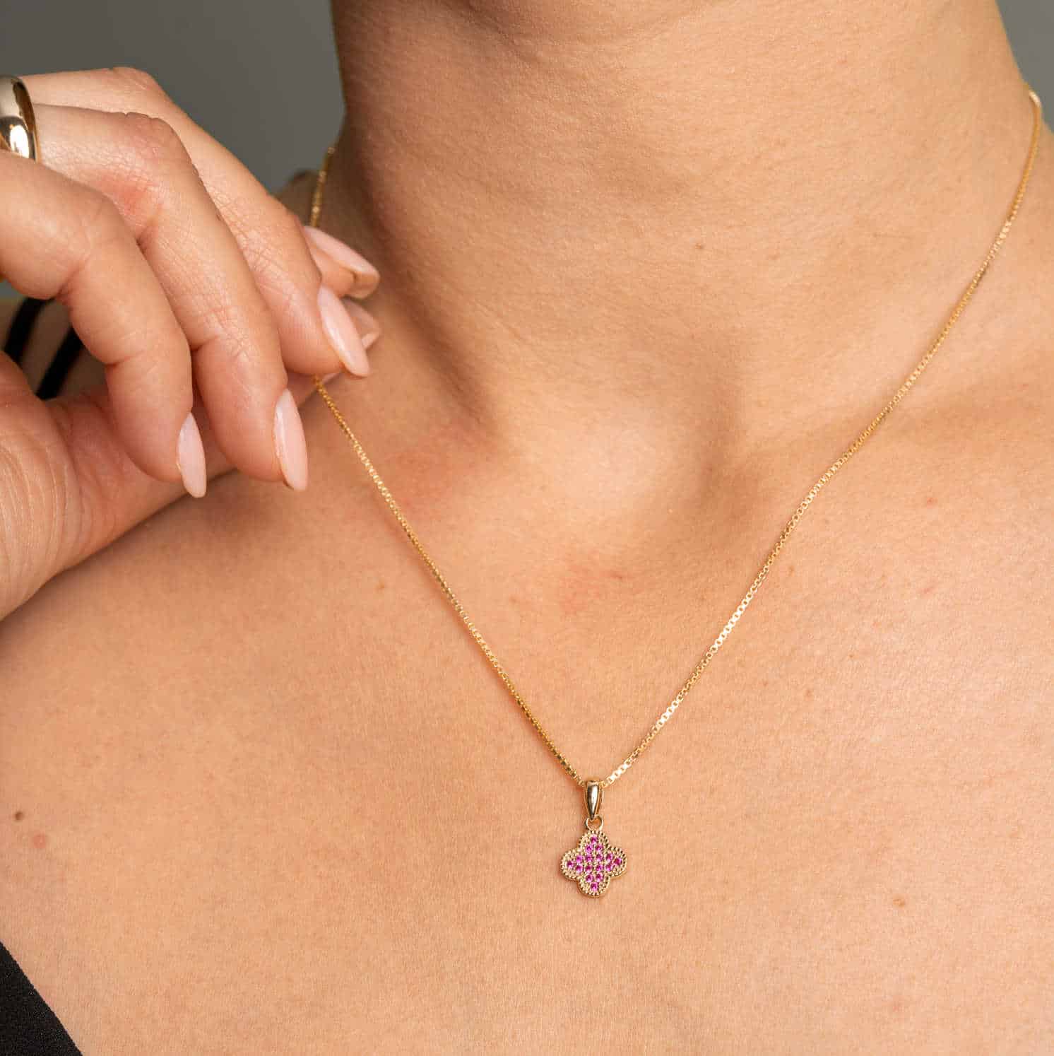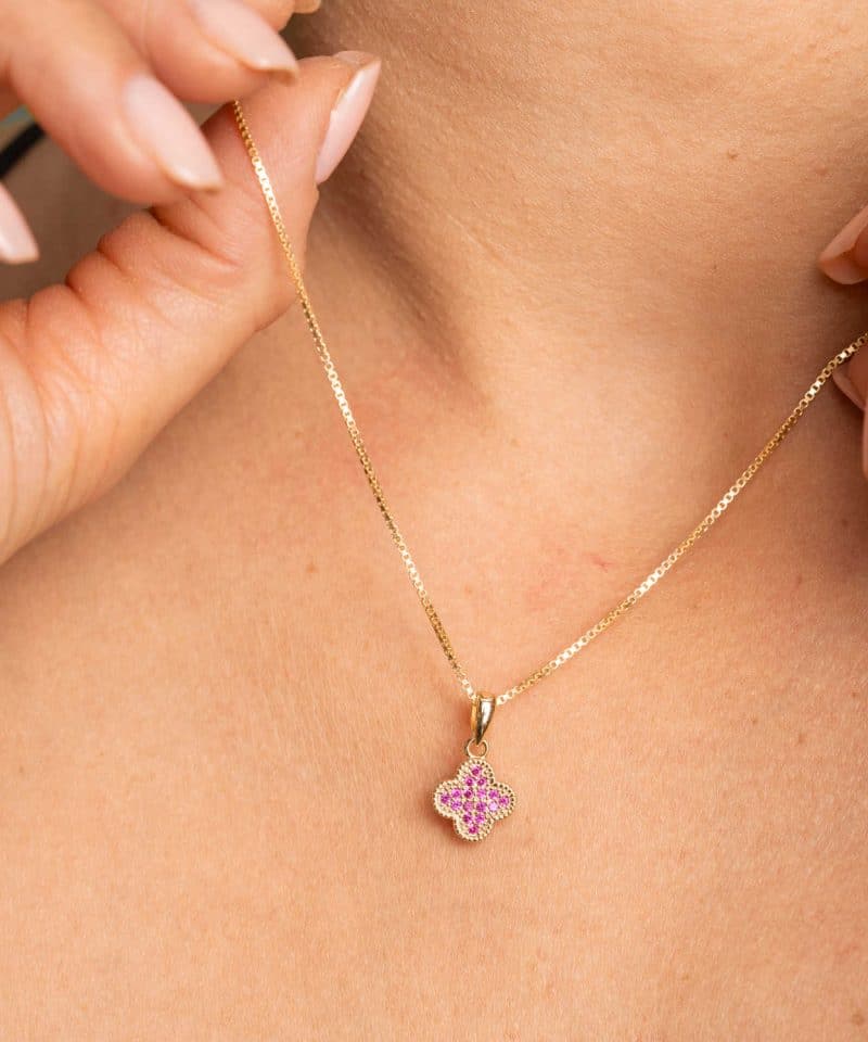 Smykke i sølv med rosa zirkonia kløver