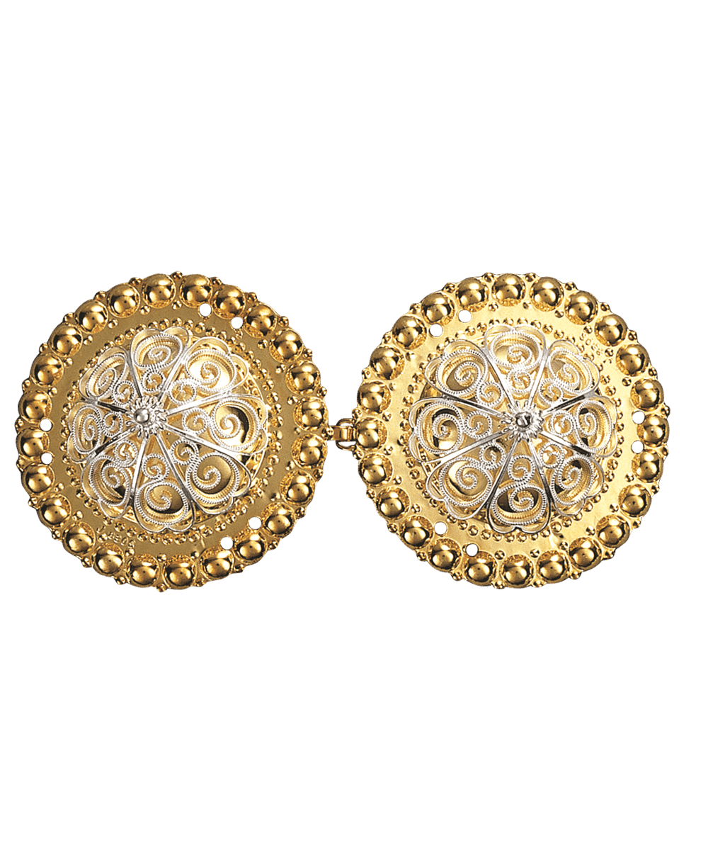 Beltespenne med kruser og syhol, forgylt/kvit