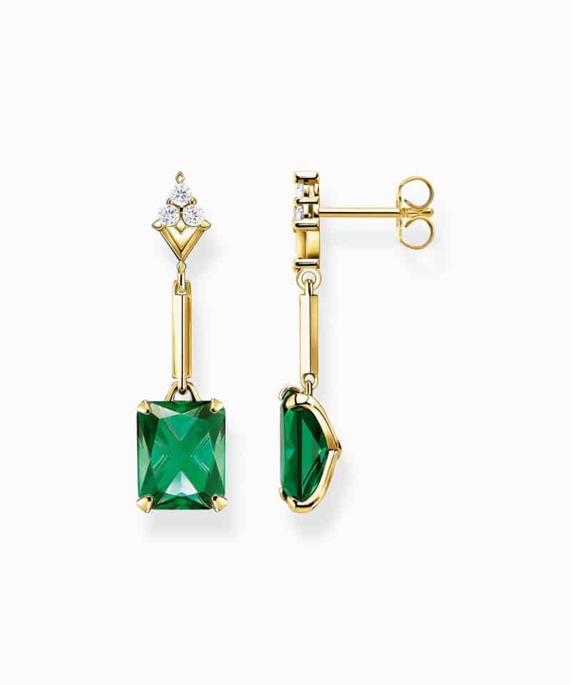 Thomas Sabo Earrings with green and white stones gold plated