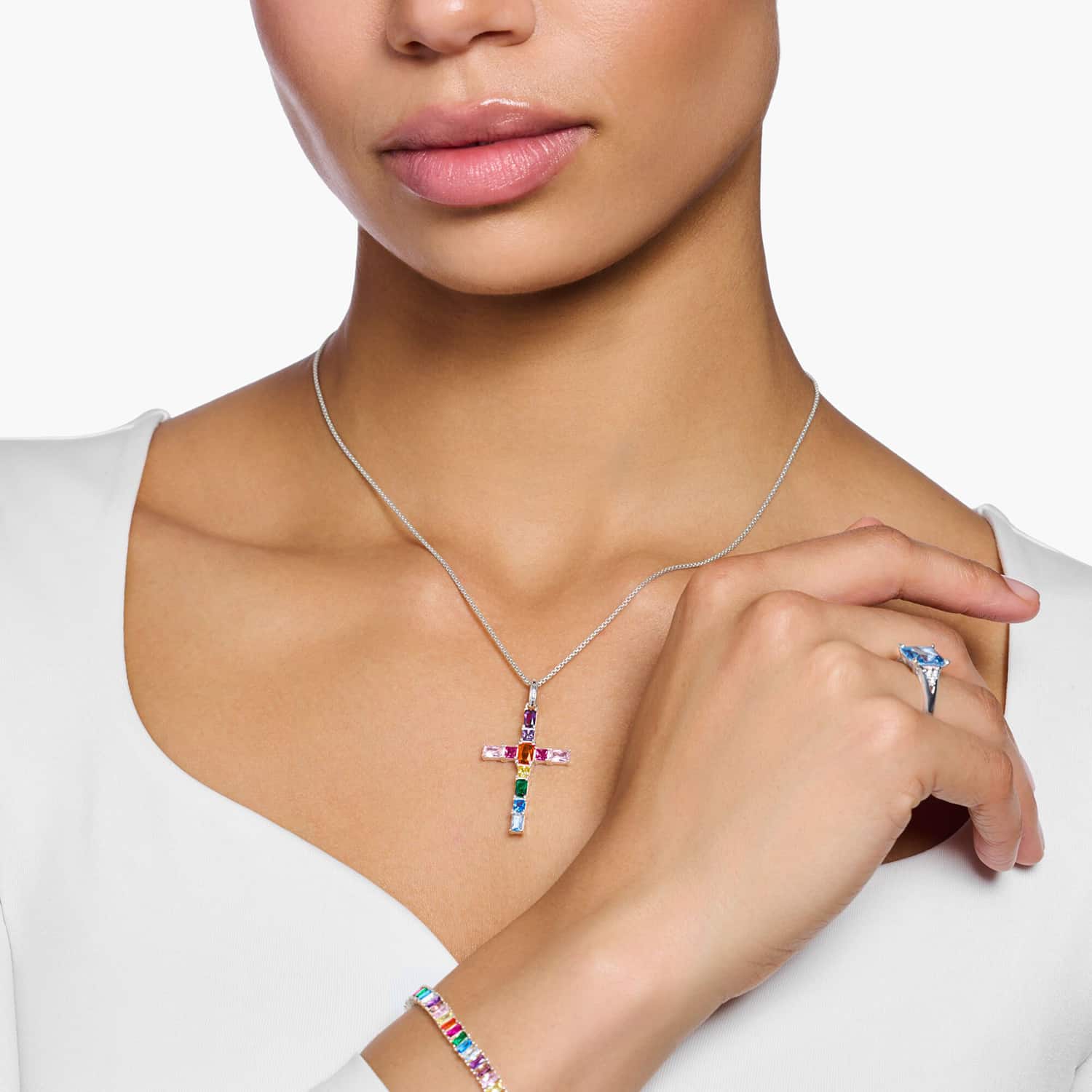 Thomas Sabo Pendant cross with colourful stones silver