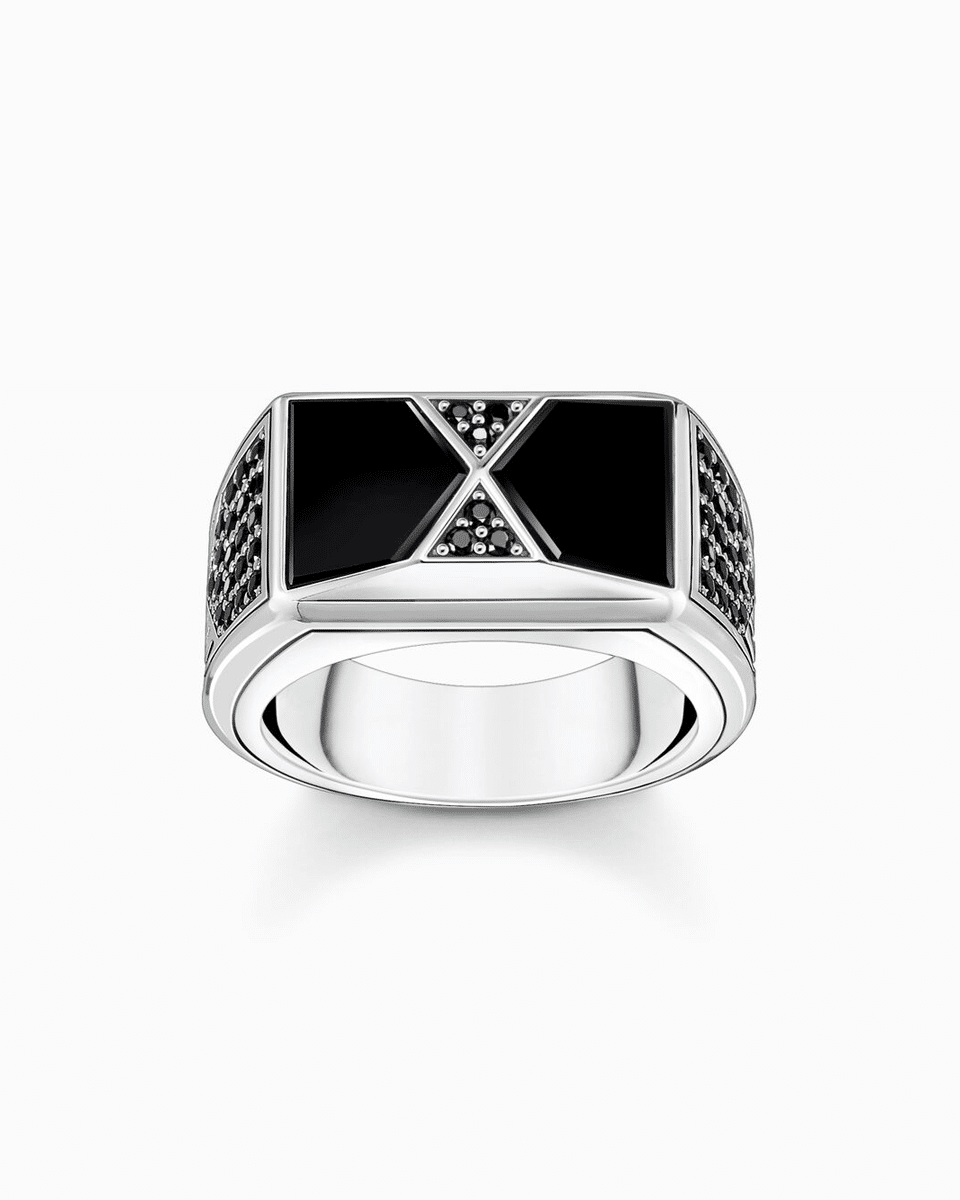 Thomas Sabo Ring with black onyx and black stones silver str. 68