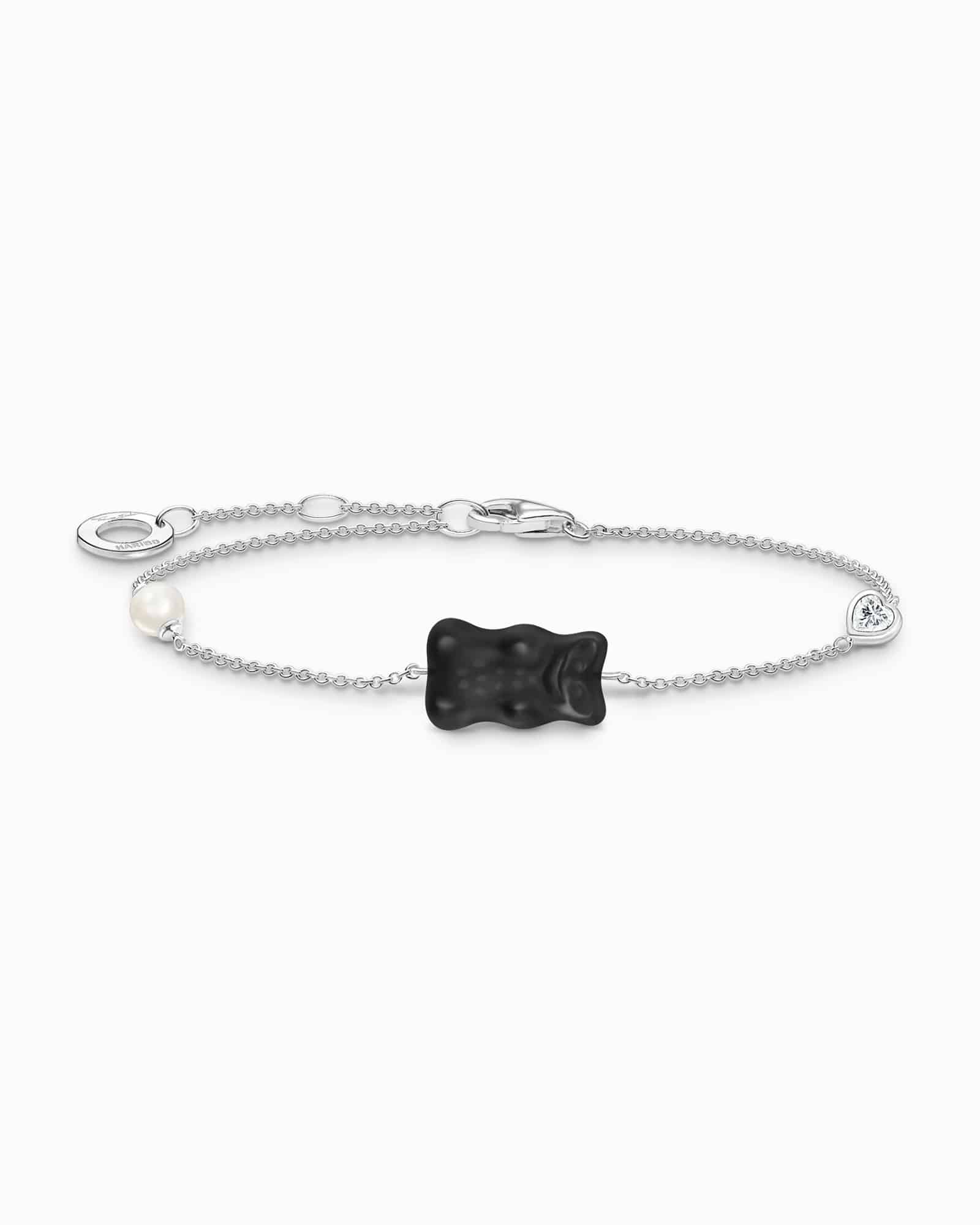 Thomas Sabo Silver bracelet with black Goldbears, freshwater pearl & zirconia
