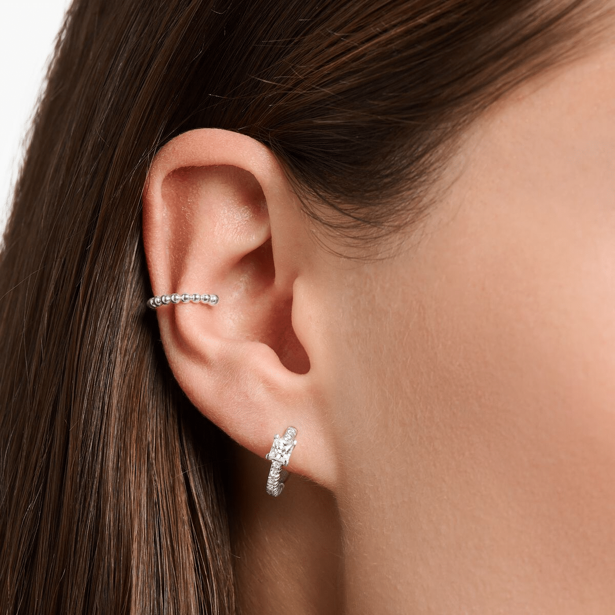 Thomas Sabo Single hoop earring with white stones silver