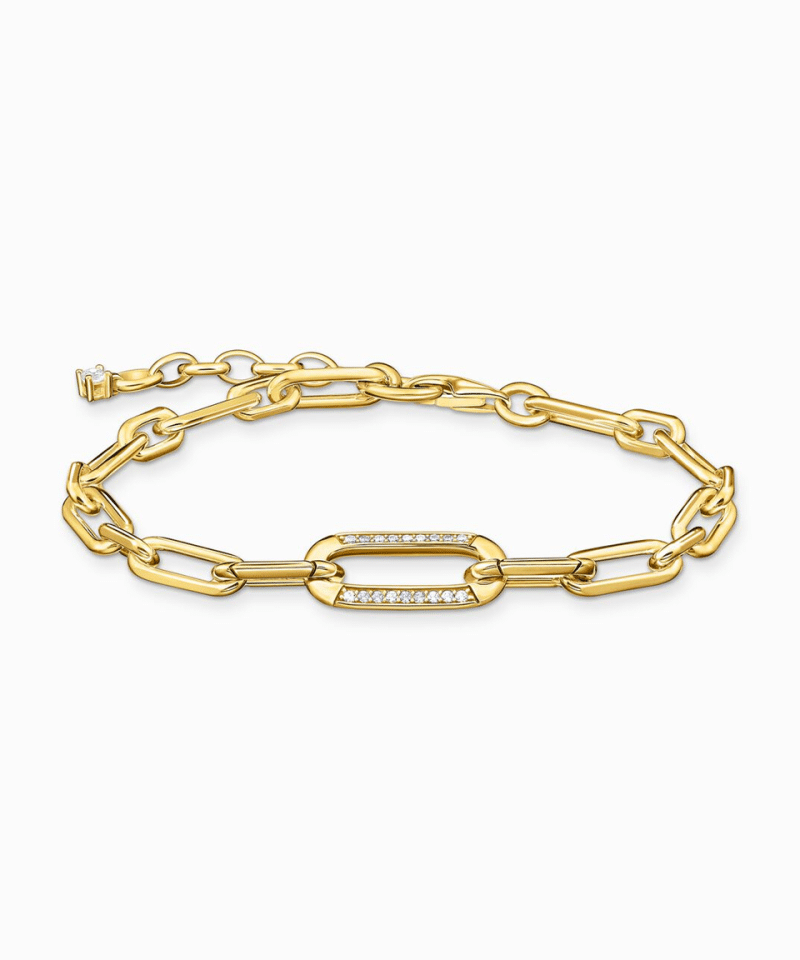 Thomas Sabo Yellow-gold plated link bracelet with anchor element and zirconia
