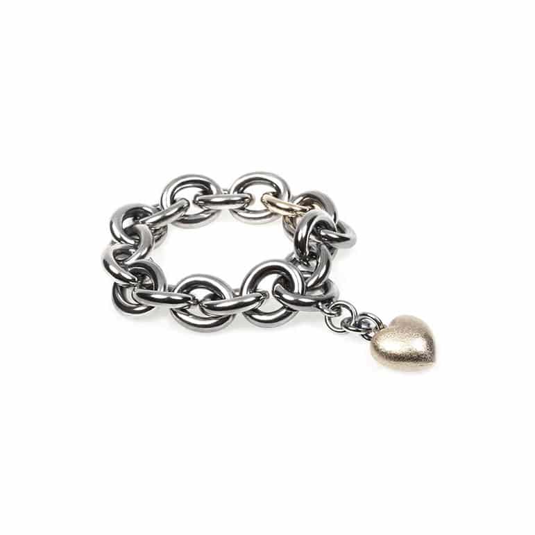Van Bergen – Golden / Love Heart Armbånd i oksidert sølv med gult gull